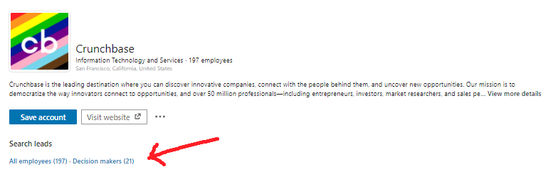 Second, if you know the organization you’re keen to pursue, you can also learn who their decision makers are simply by visiting their company page. This will give you a larger list of decision makers, taking in middle management across the organization, and may or may not be as helpful.